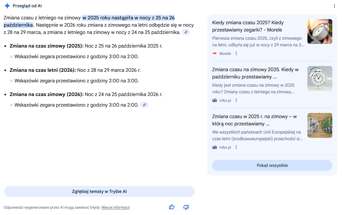 Zmiany w sposobie prezentowania wyników przez systemy oparte na AI nie odwracają zasad SEO, lecz podkreślają te, które od zawsze były obecne. Dobrze opracowana treść, wiarygodne źródła i spójność tematyczna były fundamentem skutecznego pozycjonowania na długo przed pojawieniem się modeli językowych. Nowością jest jedynie to, że te elementy stały się bardziej widoczne w praktyce – wpływają nie tylko na pozycję w wynikach, ale również na to, czy strona zostanie wykorzystana przez system generatywny jako źródło.